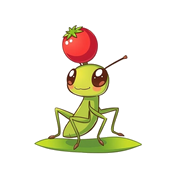 Decorate with cuteness using this funny grasshopper poster, depicting a grasshopper perfectly balancing a bright red berry on its head. A charming addition to any room.